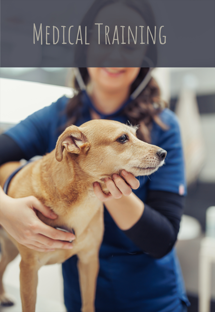 Medical Training beschreibt das Training an Pflegemassnahmen und Körperpflege, die Vorbereitung des Hundes auf den Tierarztbesuch und verschiedene andere Behandlungen. Der Hund lernt dabei auf möglichst positiver und freiwilliger Basis mit seinem Menschen zu kooperieren.